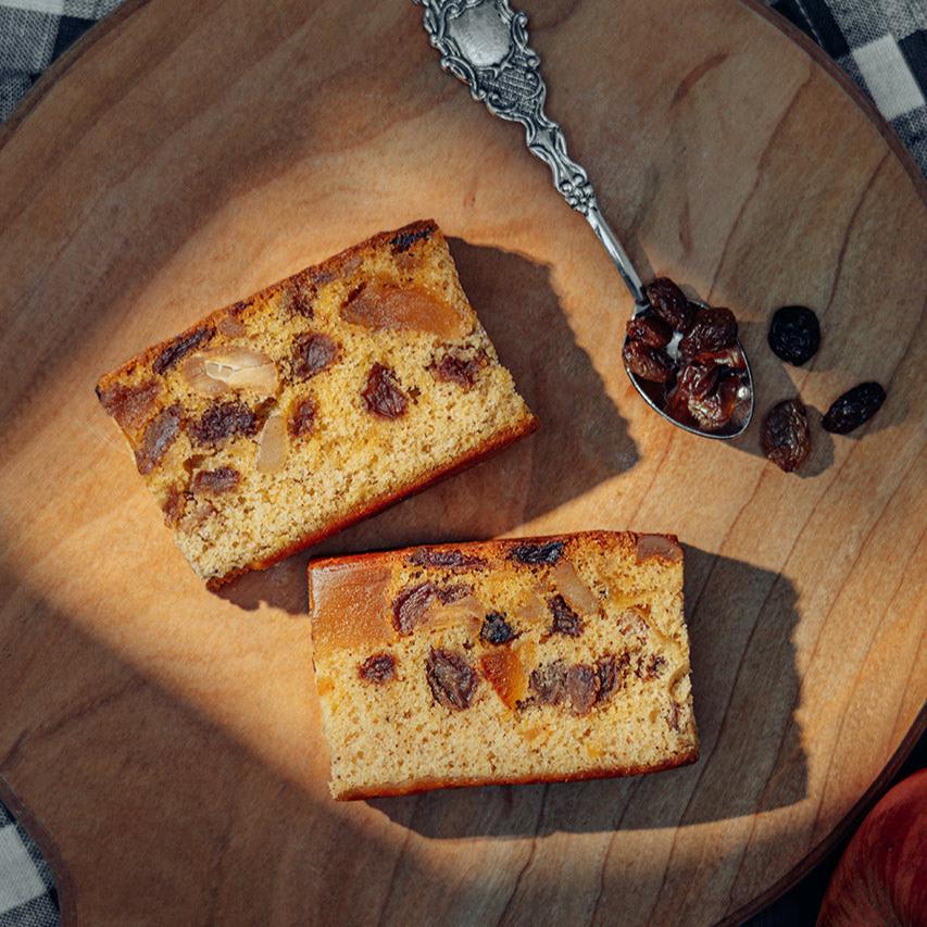バター・ベーキングパウダー・香料・保存料不使用。ドライフルーツとナッツ・季節のフルーツをたっぷり使い低温でじっくり焼きこみ熟成させたケーキは、素朴で味わい深く、大切な人へのギフトにおすすめです。